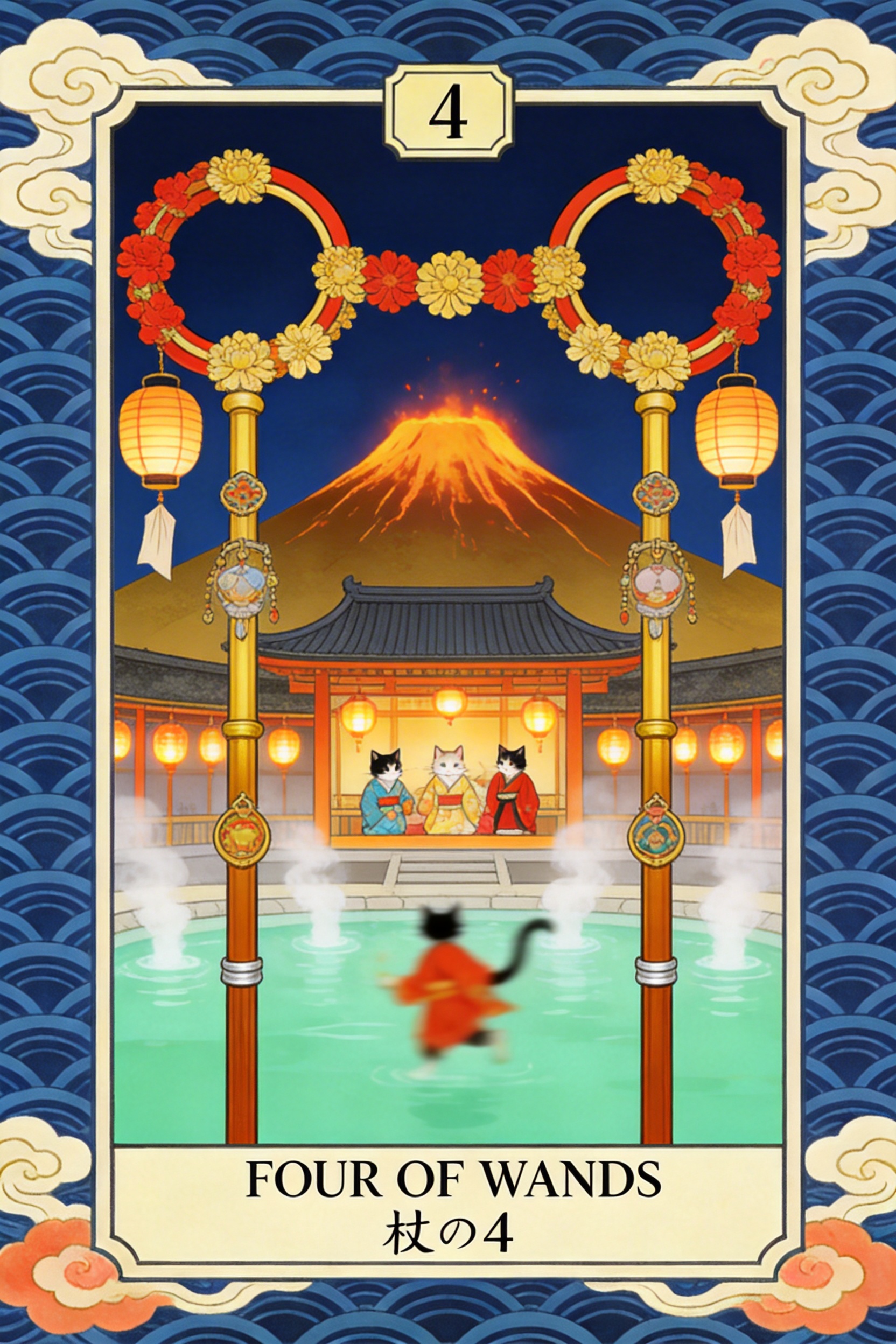 The Four of Wands tarot card represents celebration, stability, and joyful milestones. Traditionally depicted with four wands forming a decorated archway, this card symbolizes a moment of happiness shared with others β often tied to home, family, and community. It reflects the feeling of reaching an important stage in life where you can pause and celebrate progress. When the Four of Wands appears upright in a tarot reading, it often signals events such as gatherings, celebrations, weddings, or reunions. It represents harmony in your environment and a sense that things are finally coming together. The energy of this card is grounded in stability, suggesting that the foundations you have been building are now supporting a more joyful and balanced phase of life. Beyond literal celebrations, the Four of Wands also symbolizes emotional security. It reminds you to appreciate the moments of peace and happiness that come after periods of effort or challenge. This card encourages gratitude for the people and environments that support your growth.