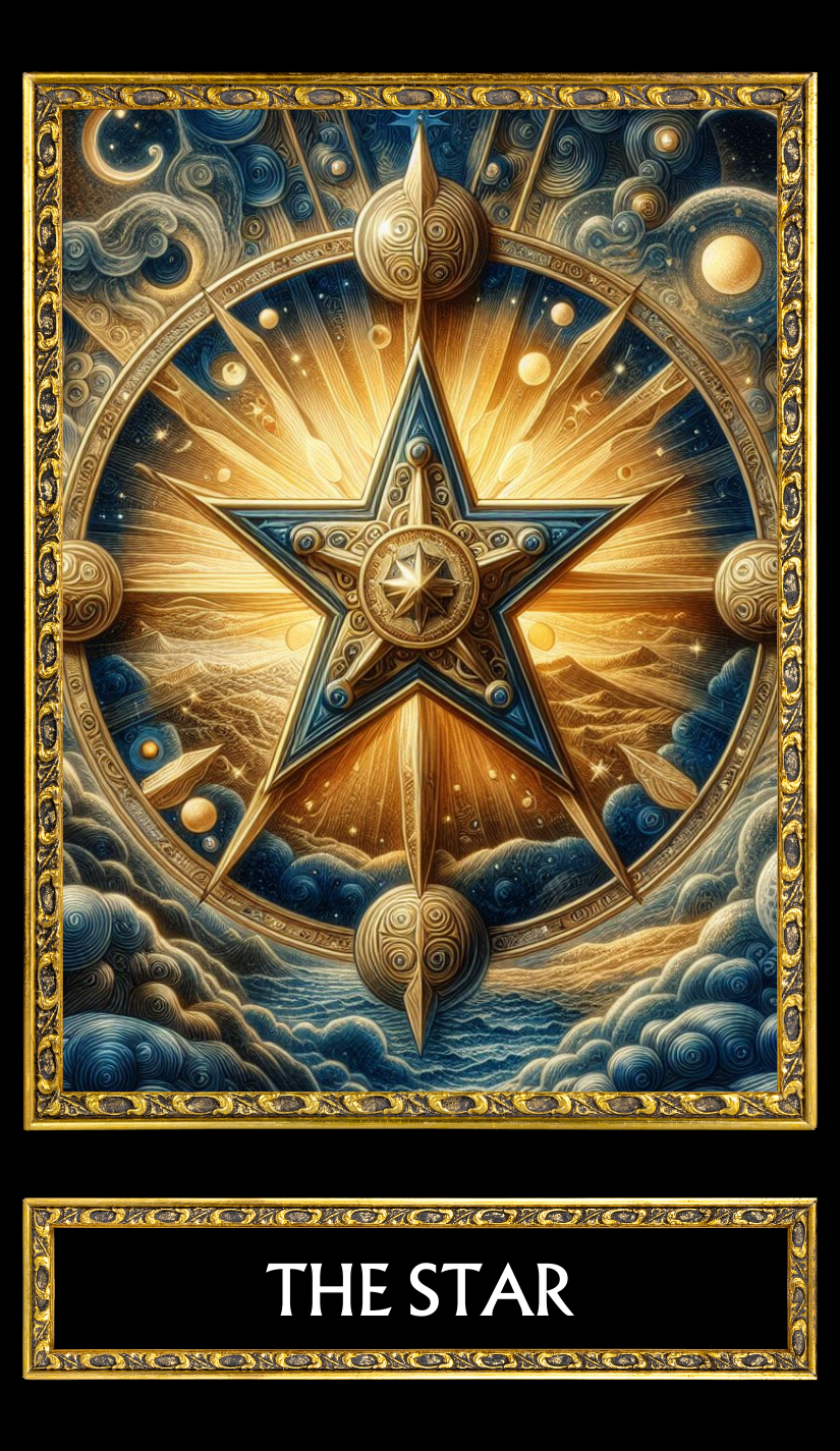 The Star is one of the most beloved cards in the Major Arcana β a card of profound hope, healing, and renewal after a period of darkness. Numbered XVII, it follows The Tower, offering the calm after the storm. A figure kneels by the water's edge beneath a vast night sky, pouring water freely onto both land and water β a gesture of giving, of flow, and of trust in abundance. Above her, a large star is flanked by seven smaller ones, representing the seven chakras and the alignment of body, mind, and spirit. When The Star appears upright, it is the universe's way of telling you that better times are not just coming β they are already here. This is a card of restoration and quiet confidence. You are healing. You are on the right path. Keep going.