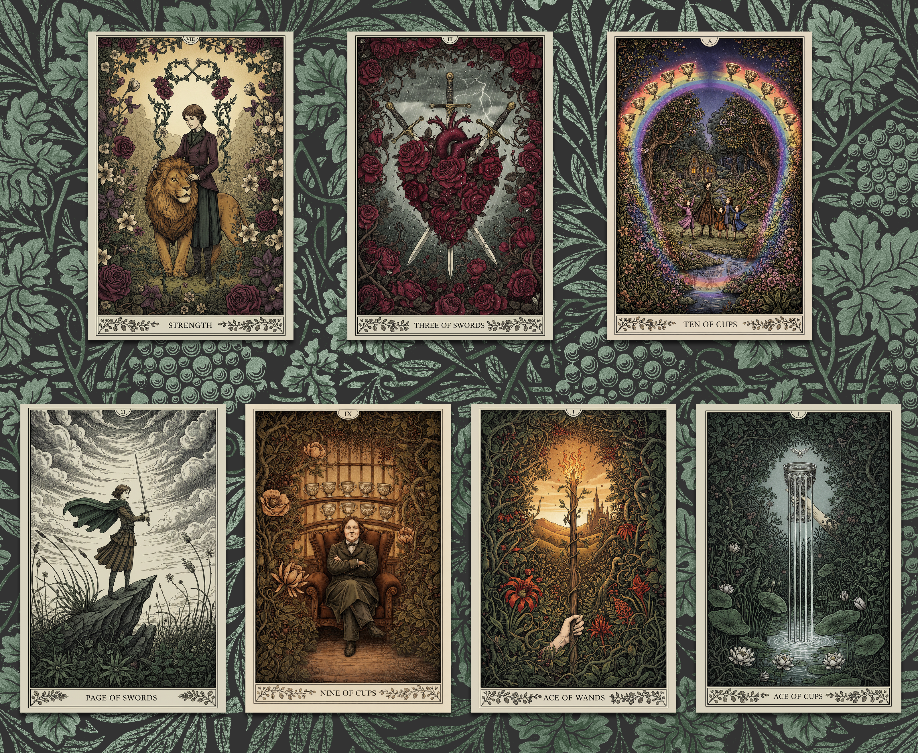 - β’ Gothic floral tarot designs