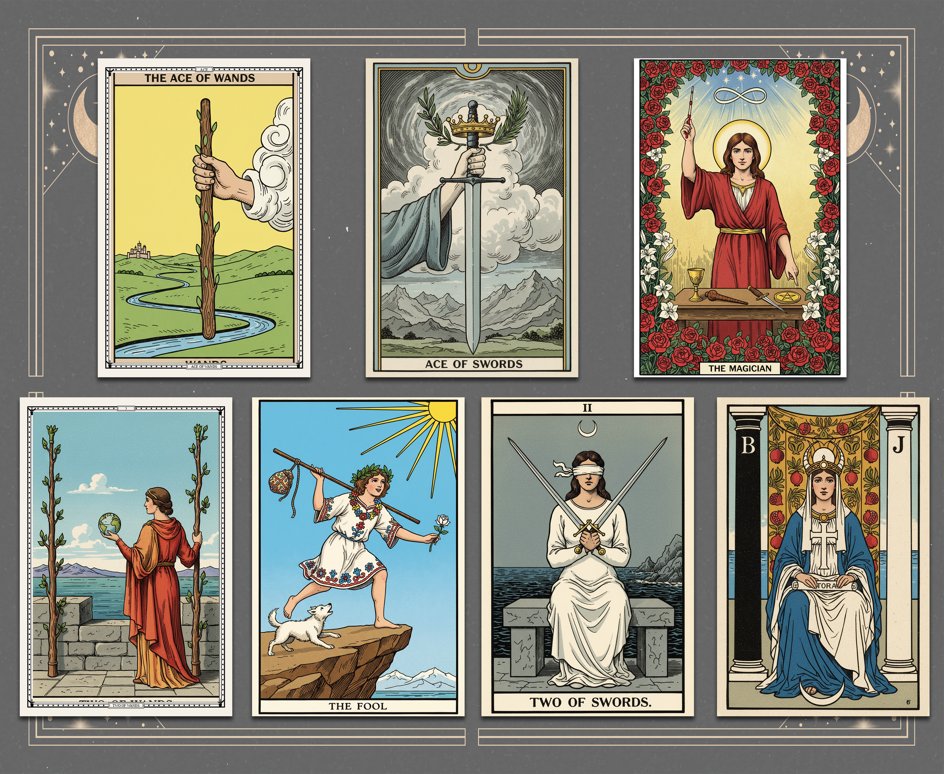 The Traditional Tarot Template is designed for creators who want to build a deck rooted in the classic Rider–Waite tarot system. With balanced compositions, familiar symbolism, and a timeless visual structure, this template allows you to create a deck that feels both authentic and widely recognizable. Whether you are creating a traditional tarot deck, teaching tarot meanings, or developing a modern interpretation of classic cards, this template provides a strong foundation. It is ideal for both beginners and experienced readers who value clarity, symbolism, and structure in tarot design.