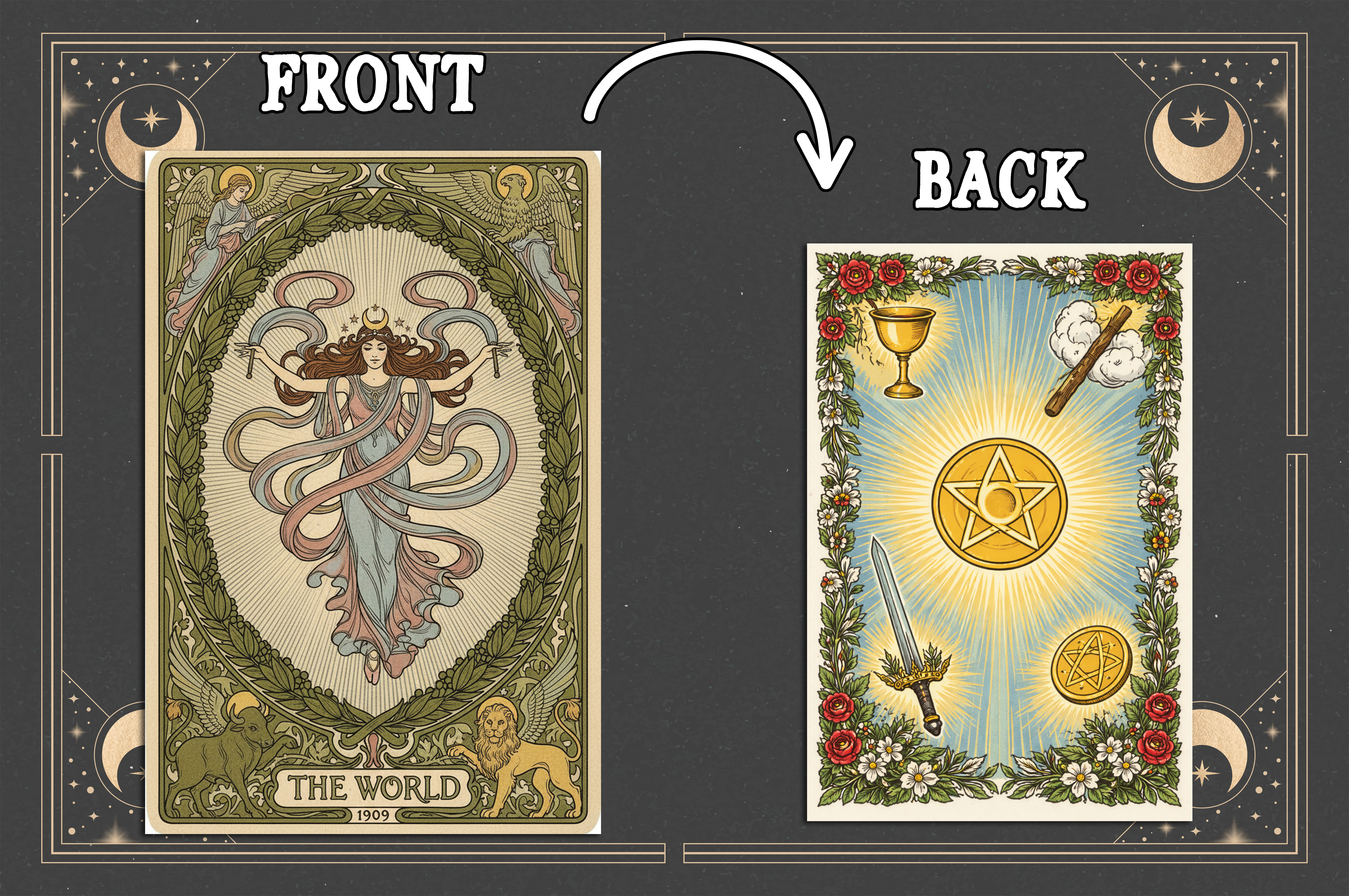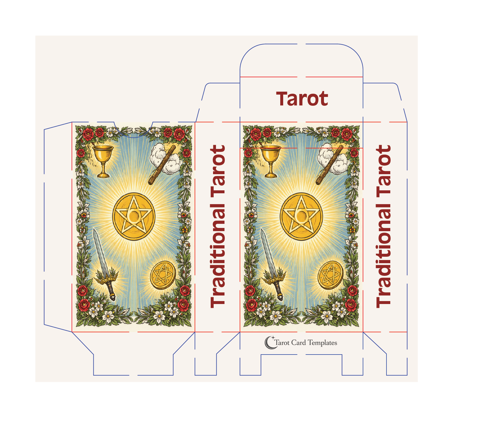 The Traditional Tarot Template is built to professional tarot card specifications, including correct dimensions, bleed margins, and high-resolution output. It is suitable for both digital use and physical printing, ensuring your deck looks consistent, clear, and high quality.
