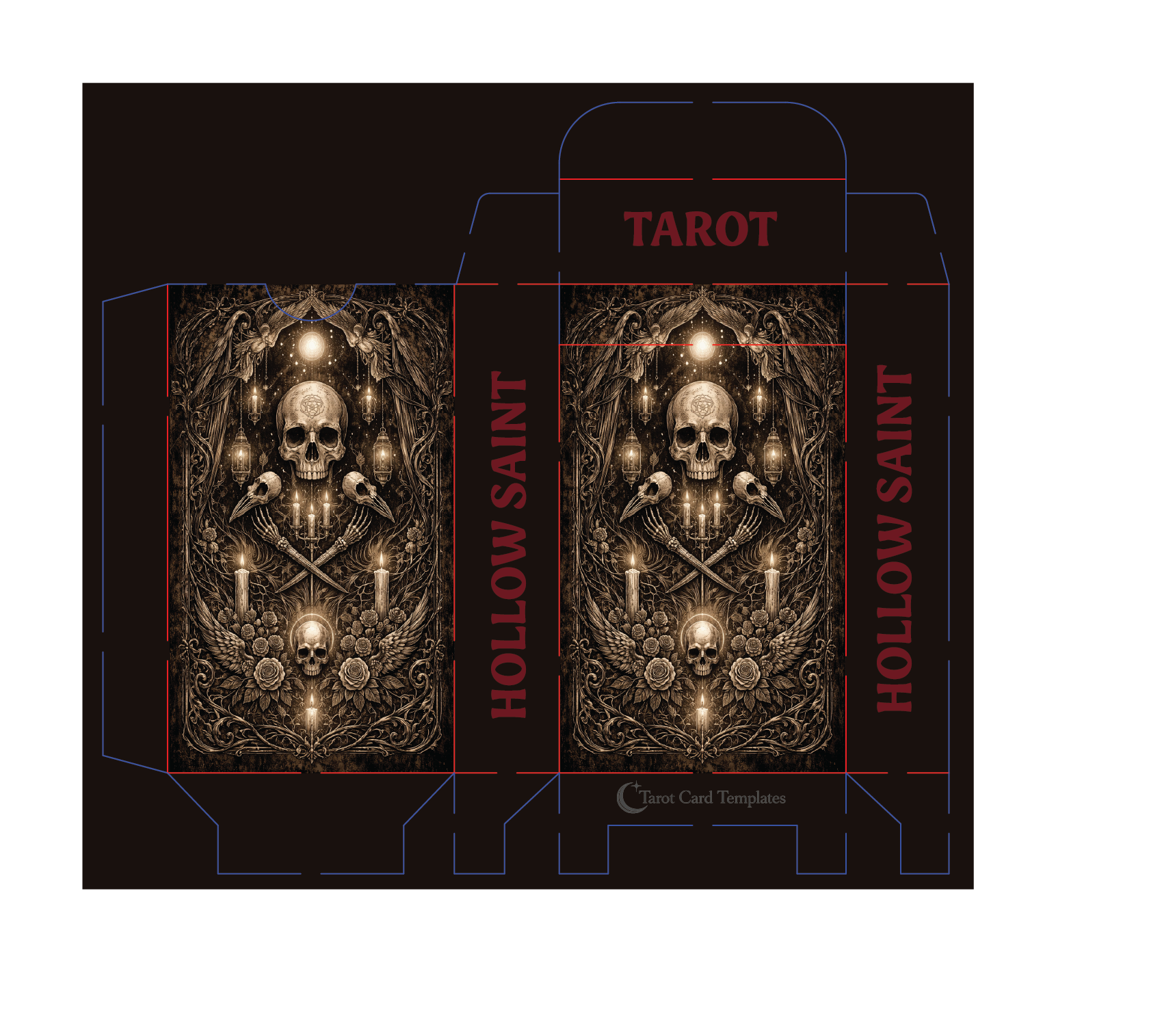 The Hollow Saint Tarot Template draws inspiration from sacred iconography, forgotten relics, and hollow figures suspended between life and death. This tarot design blends gothic spirituality with decay, silence, and reverence β creating a powerful atmosphere for storytelling and divination.